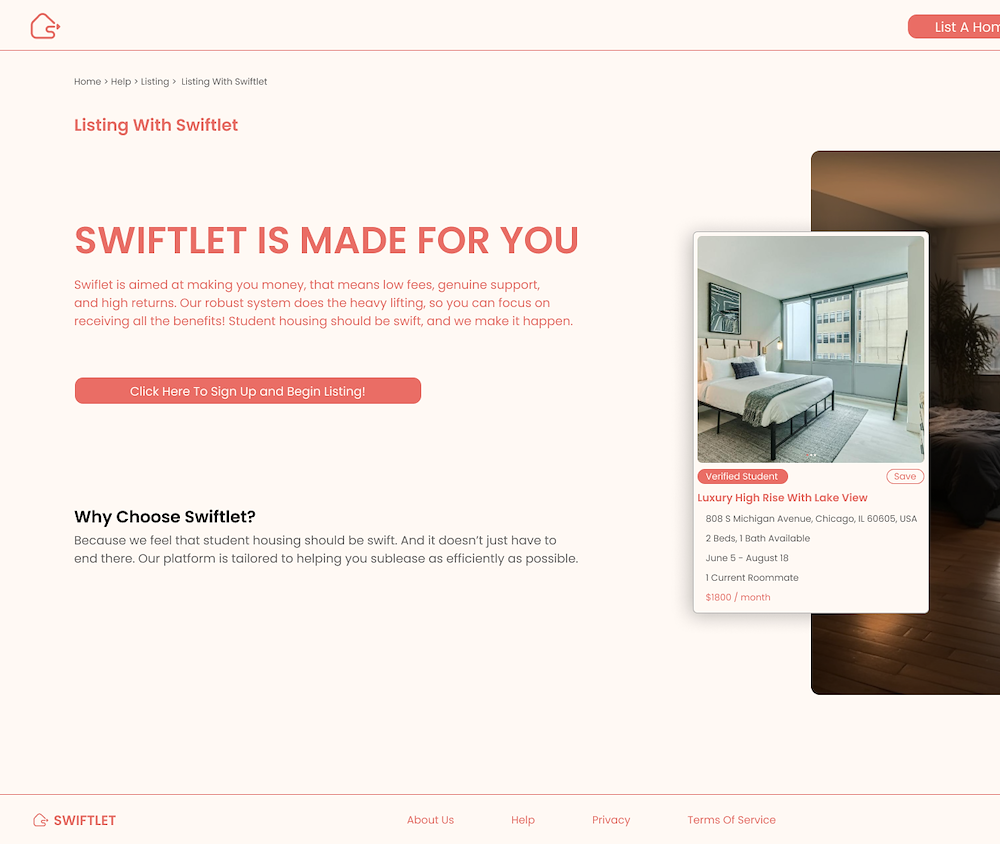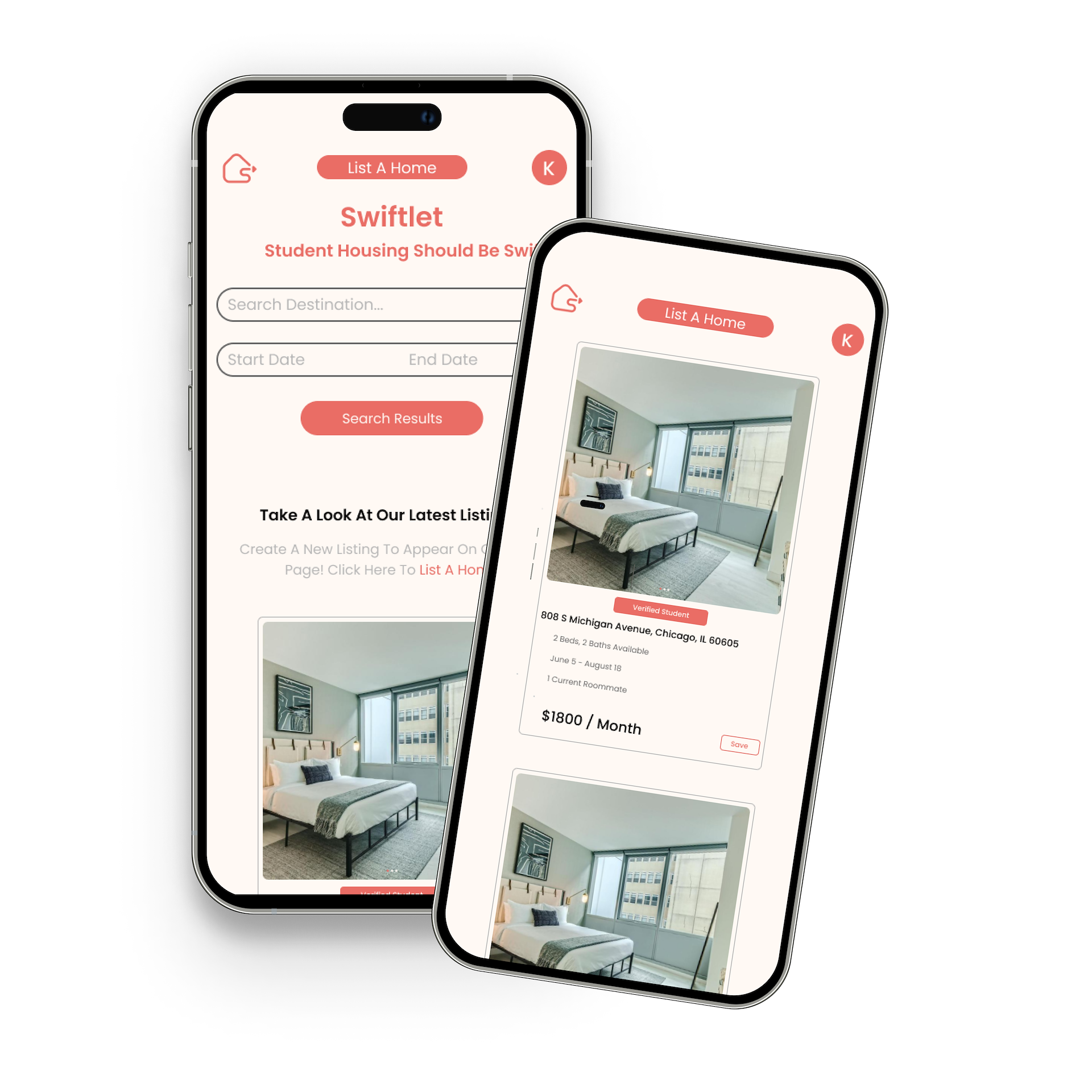 STUDENT HOUSING SHOULD BE SWIFT. WITH A TEAM OF 4 GRADUATES, WE UNDERTOOK THE CHALLENGE OF CREATING AN IOT SERVICE TO IMPROVE UPON FAILURES WE, AND OTHER STUDENTS HAD WHILE SEARCHING FOR HOMES AND SUBLEASES.